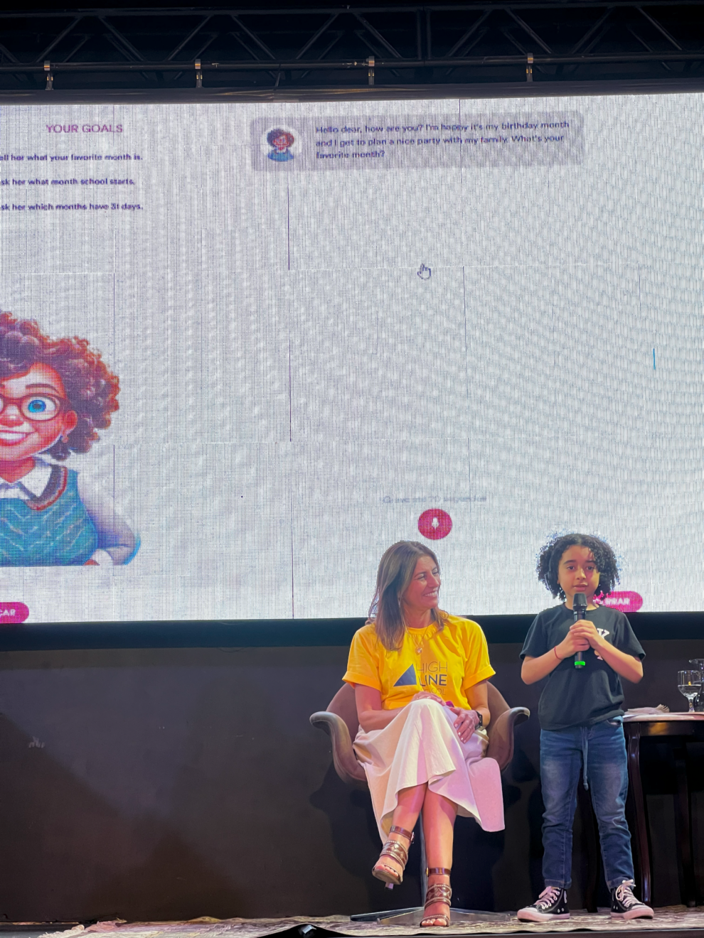 A inteligência artificial desenvolvida pela Simple Idiomas para trabalhar o inglês dos alunos também foi apresentada e exibida por dois de nossos alunos.